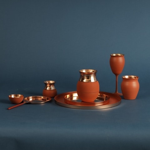 Their terracotta coated thaali platters and bowls by Ikkis are made in pure copper – a material known for its health benefits in Ayurveda creating a unique dining experience and plays with our perception of fragility associated with clay. This collection caught my eye a few months back and I have been excited to showcase their work with curries from my cookbook Thali.